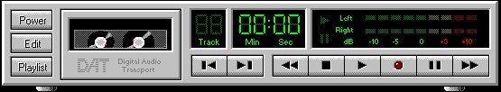 The Next/Previous buttons jump playback to the next or previous track in the playlist. Holding down the <Shift> Key and clicking on Next or Previous will bring the user to the first or last track. Power Closes the component.