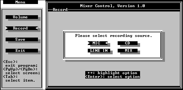 Recording Source Selection Screen