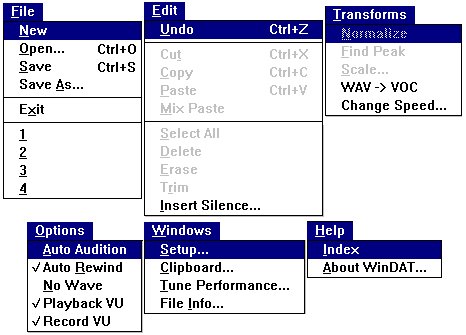 menu. When clicking on a file in the Files list box, WinDAT will play that file until the user clicks on another file or control.